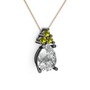 Swarovski ve peridot 925 ayar siyah rodyum kaplama gümüş kolye (40 cm rose altın rolo zincir)
