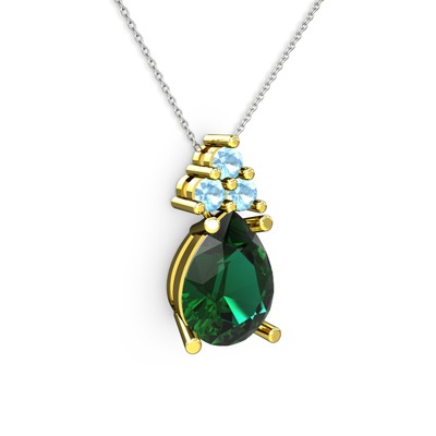 Yeşil kuvars ve akuamarin 925 ayar altın kaplama gümüş kolye (40 cm beyaz altın rolo zincir)