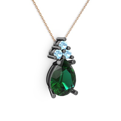 Yeşil kuvars ve akuamarin 925 ayar siyah rodyum kaplama gümüş kolye (40 cm rose altın rolo zincir)