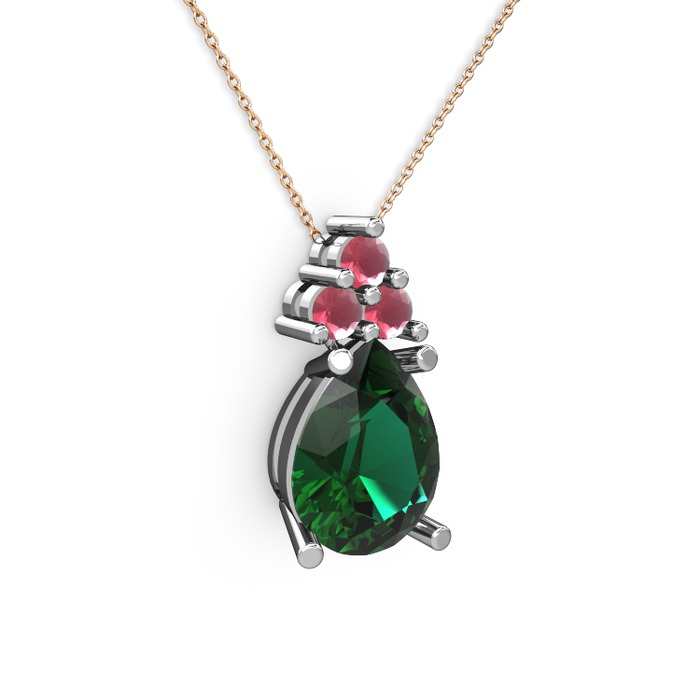 Yeşil kuvars ve kök yakut 14 ayar beyaz altın kolye (40 cm rose altın rolo zincir)