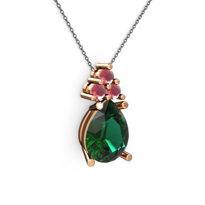 Yeşil kuvars ve kök yakut 14 ayar rose altın kolye (40 cm gümüş rolo zincir)