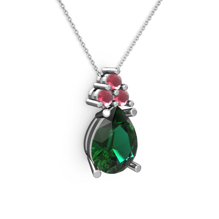 Yeşil kuvars ve kök yakut 8 ayar beyaz altın kolye (40 cm beyaz altın rolo zincir)