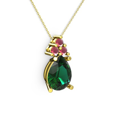 Yeşil kuvars ve kök yakut 925 ayar altın kaplama gümüş kolye (40 cm altın rolo zincir)