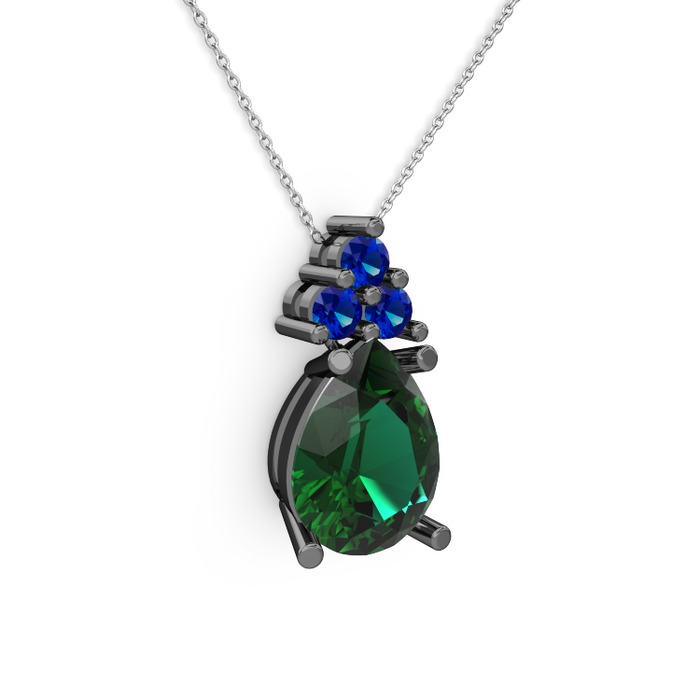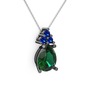 Yeşil kuvars ve lab safir 925 ayar siyah rodyum kaplama gümüş kolye (40 cm beyaz altın rolo zincir)
