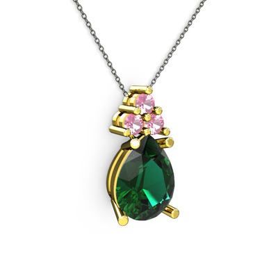Yeşil kuvars ve pembe kuvars 18 ayar altın kolye (40 cm gümüş rolo zincir)