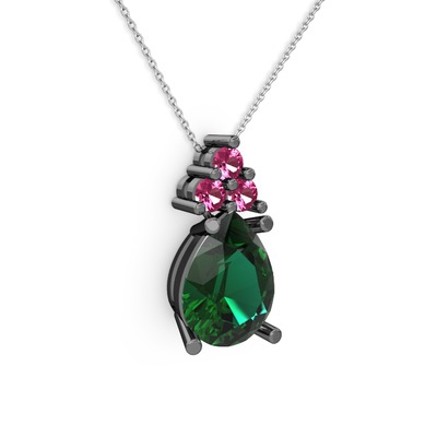 Yeşil kuvars ve rodolit garnet 925 ayar siyah rodyum kaplama gümüş kolye (40 cm beyaz altın rolo zincir)
