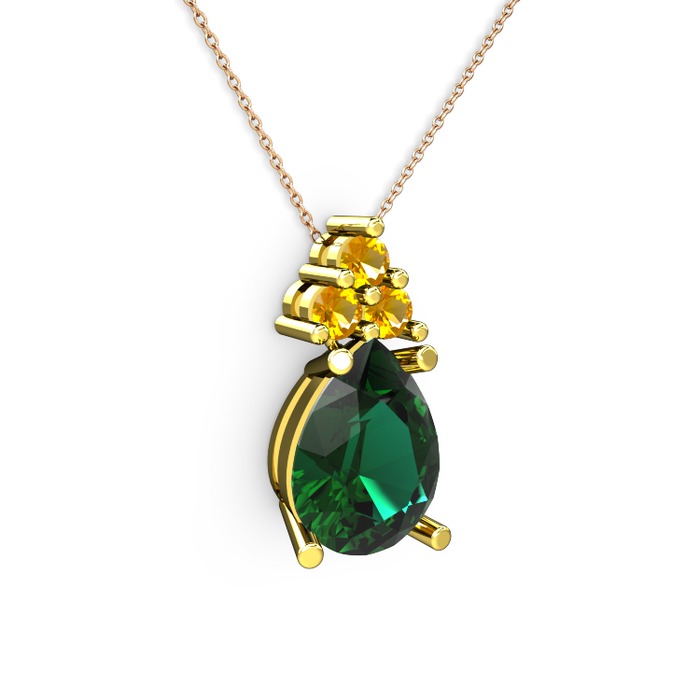 Yeşil kuvars ve sitrin 8 ayar altın kolye (40 cm gümüş rolo zincir)