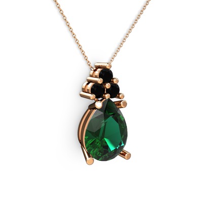 Yeşil kuvars ve siyah zirkon 14 ayar rose altın kolye (40 cm rose altın rolo zincir)