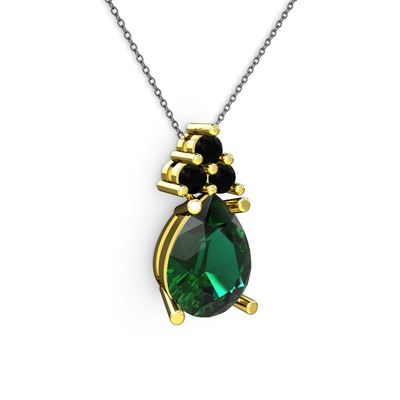 Yeşil kuvars ve siyah zirkon 8 ayar altın kolye (40 cm gümüş rolo zincir)