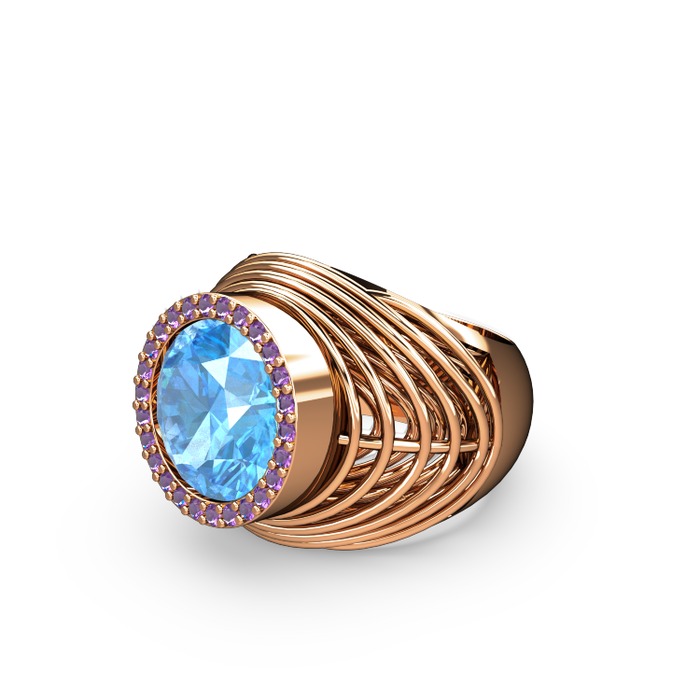 Akuamarin ve ametist 14 ayar rose altın yüzük
