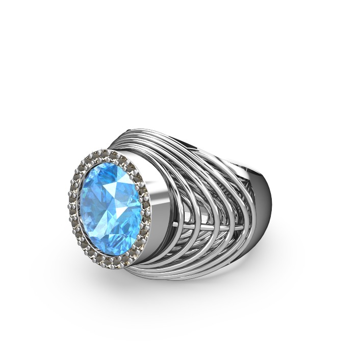 Akuamarin ve dumanlı kuvars 18 ayar beyaz altın yüzük