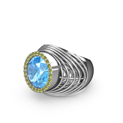 Akuamarin ve peridot 14 ayar beyaz altın yüzük