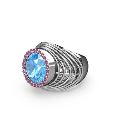 Akuamarin ve rodolit garnet 925 ayar gümüş yüzük