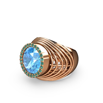 Akuamarin ve yeşil kuvars 925 ayar rose altın kaplama gümüş yüzük