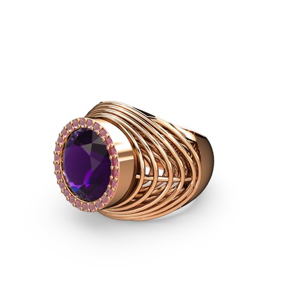 Ametist ve kök yakut 18 ayar rose altın yüzük