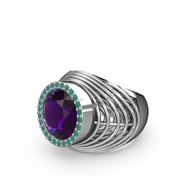 Ametist ve kök zümrüt 8 ayar beyaz altın yüzük