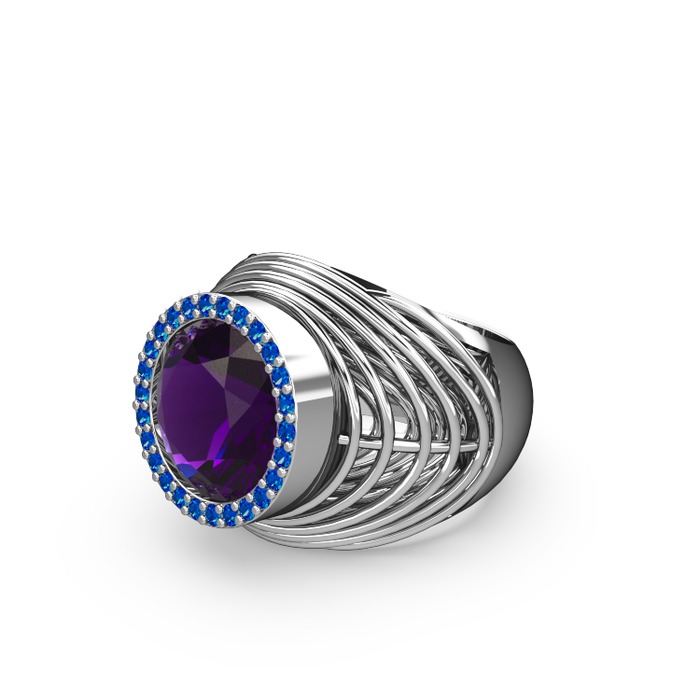 Ametist ve lab safir 18 ayar beyaz altın yüzük