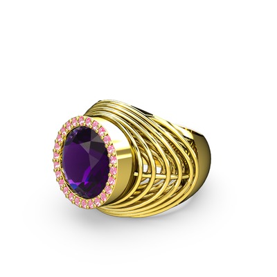 Ametist ve pembe kuvars 8 ayar altın yüzük