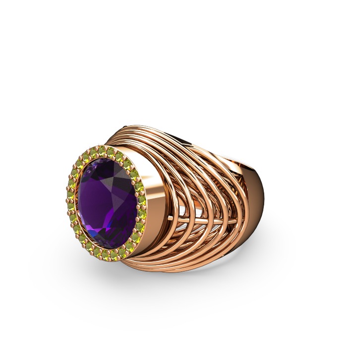 Ametist ve peridot 18 ayar rose altın yüzük