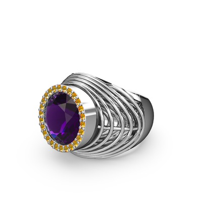 Ametist ve sitrin 8 ayar beyaz altın yüzük