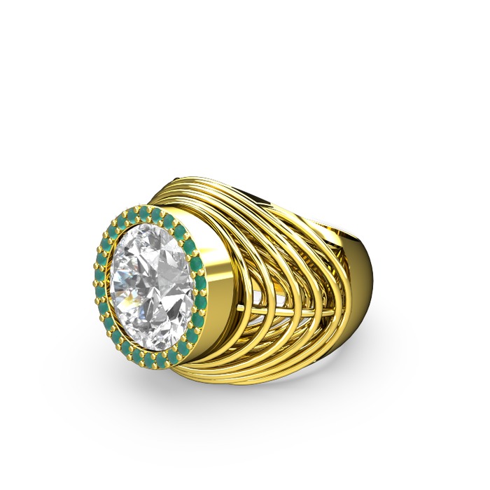 Beyaz zirkon ve kök zümrüt 18 ayar altın yüzük