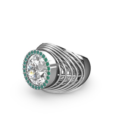 Beyaz zirkon ve kök zümrüt 8 ayar beyaz altın yüzük