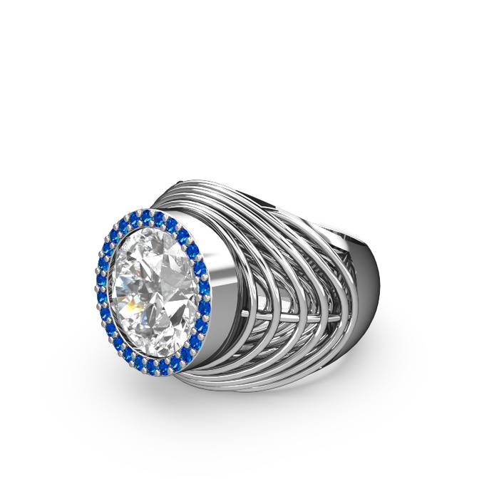 Beyaz zirkon ve lab safir 18 ayar beyaz altın yüzük