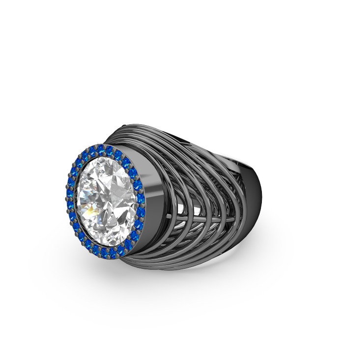 Beyaz zirkon ve lab safir 925 ayar siyah rodyum kaplama gümüş yüzük