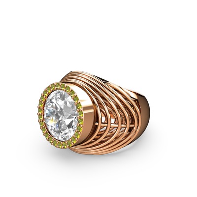 Beyaz zirkon ve peridot 14 ayar rose altın yüzük