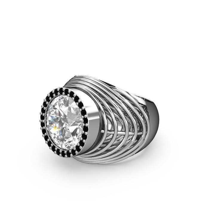 Beyaz zirkon ve siyah zirkon 8 ayar beyaz altın yüzük