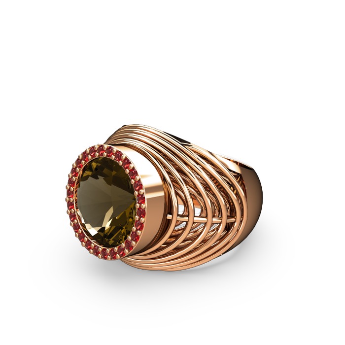 Dumanlı kuvars ve garnet 8 ayar rose altın yüzük