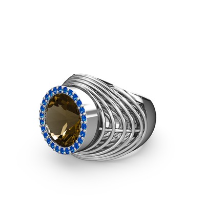Dumanlı kuvars ve lab safir 8 ayar beyaz altın yüzük