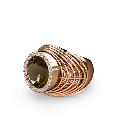 Dumanlı kuvars ve pırlanta 14 ayar rose altın yüzük (0.286 karat)