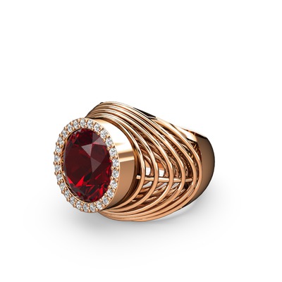 Garnet ve pırlanta 14 ayar rose altın yüzük (0.286 karat)