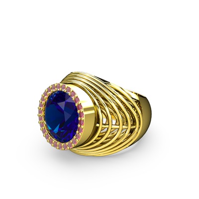 Lab safir ve kök yakut 14 ayar altın yüzük