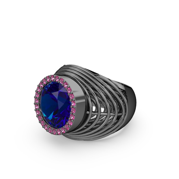Lab safir ve rodolit garnet 925 ayar siyah rodyum kaplama gümüş yüzük