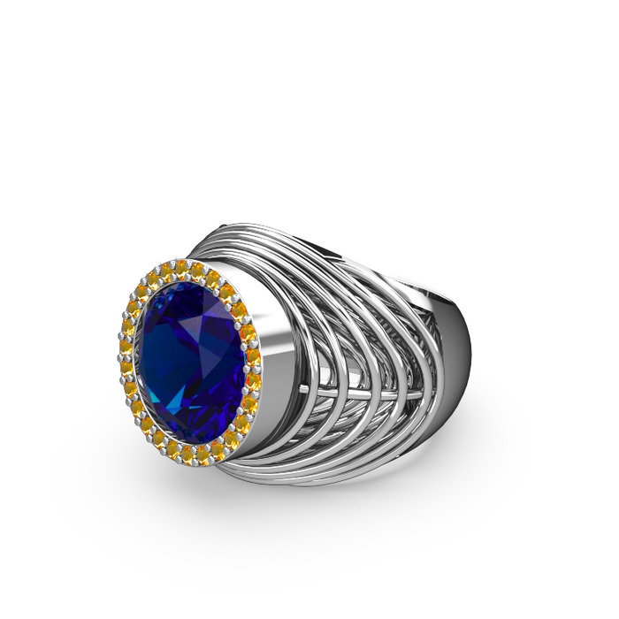 Lab safir ve sitrin 14 ayar beyaz altın yüzük