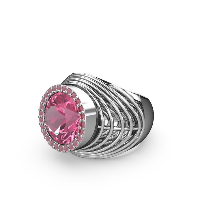 Pembe kuvars ve kök yakut 18 ayar beyaz altın yüzük