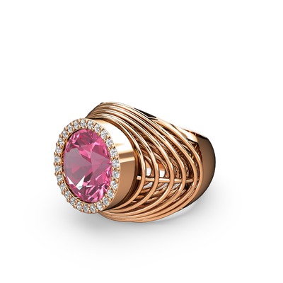 Pembe kuvars ve pırlanta 14 ayar rose altın yüzük (0.286 karat)