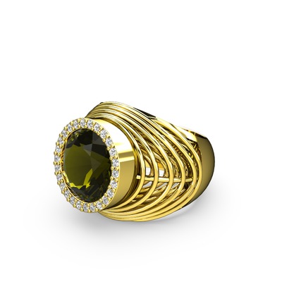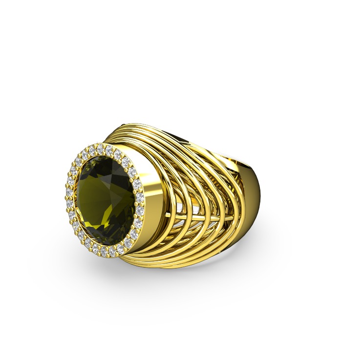 Peridot ve beyaz zirkon 18 ayar altın yüzük
