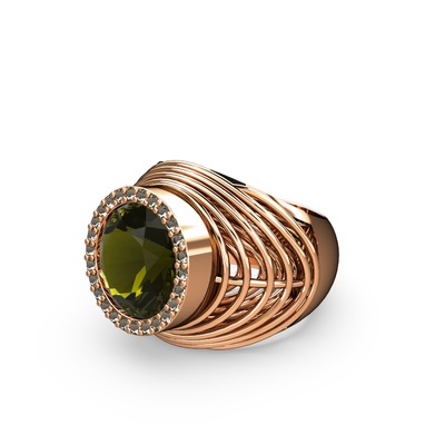 Peridot ve dumanlı kuvars 8 ayar rose altın yüzük