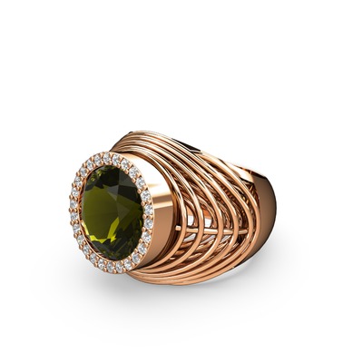 Peridot ve pırlanta 925 ayar rose altın kaplama gümüş yüzük (0.286 karat)