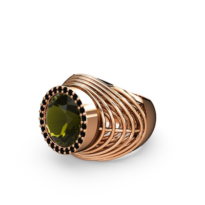Peridot ve siyah zirkon 18 ayar rose altın yüzük