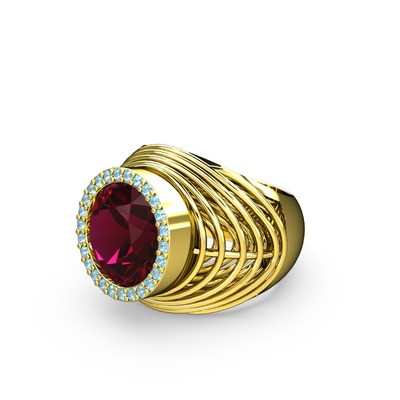 Rodolit garnet ve akuamarin 8 ayar altın yüzük