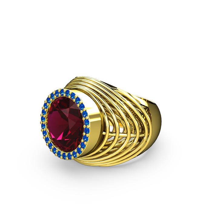 Rodolit garnet ve lab safir 14 ayar altın yüzük