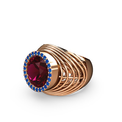 Rodolit garnet ve lab safir 14 ayar rose altın yüzük