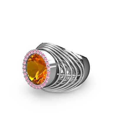 Sitrin ve pembe kuvars 8 ayar beyaz altın yüzük