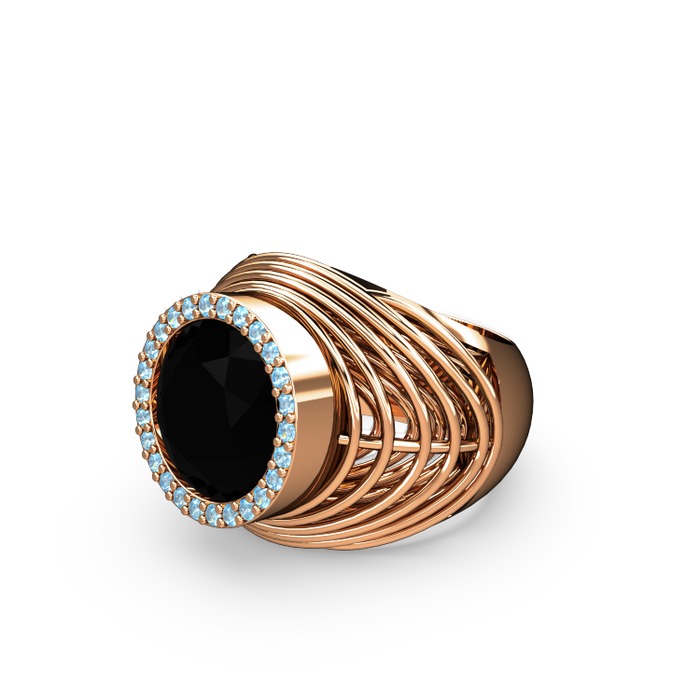 Siyah zirkon ve akuamarin 8 ayar rose altın yüzük