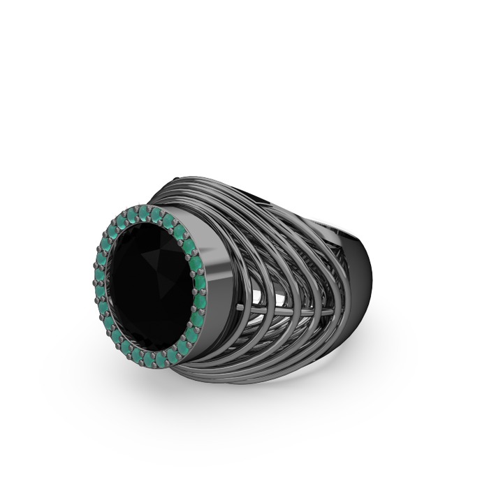 Siyah zirkon ve kök zümrüt 925 ayar siyah rodyum kaplama gümüş yüzük