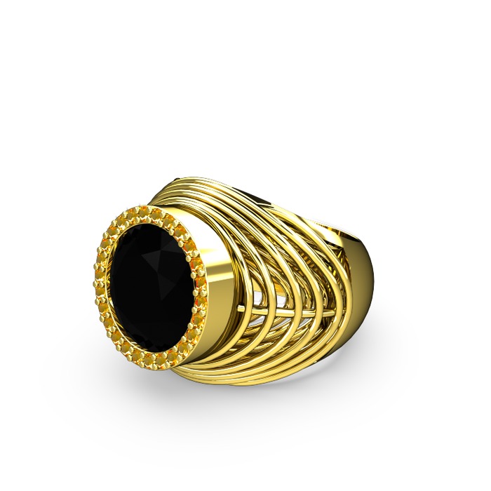 Siyah zirkon ve sitrin 14 ayar altın yüzük